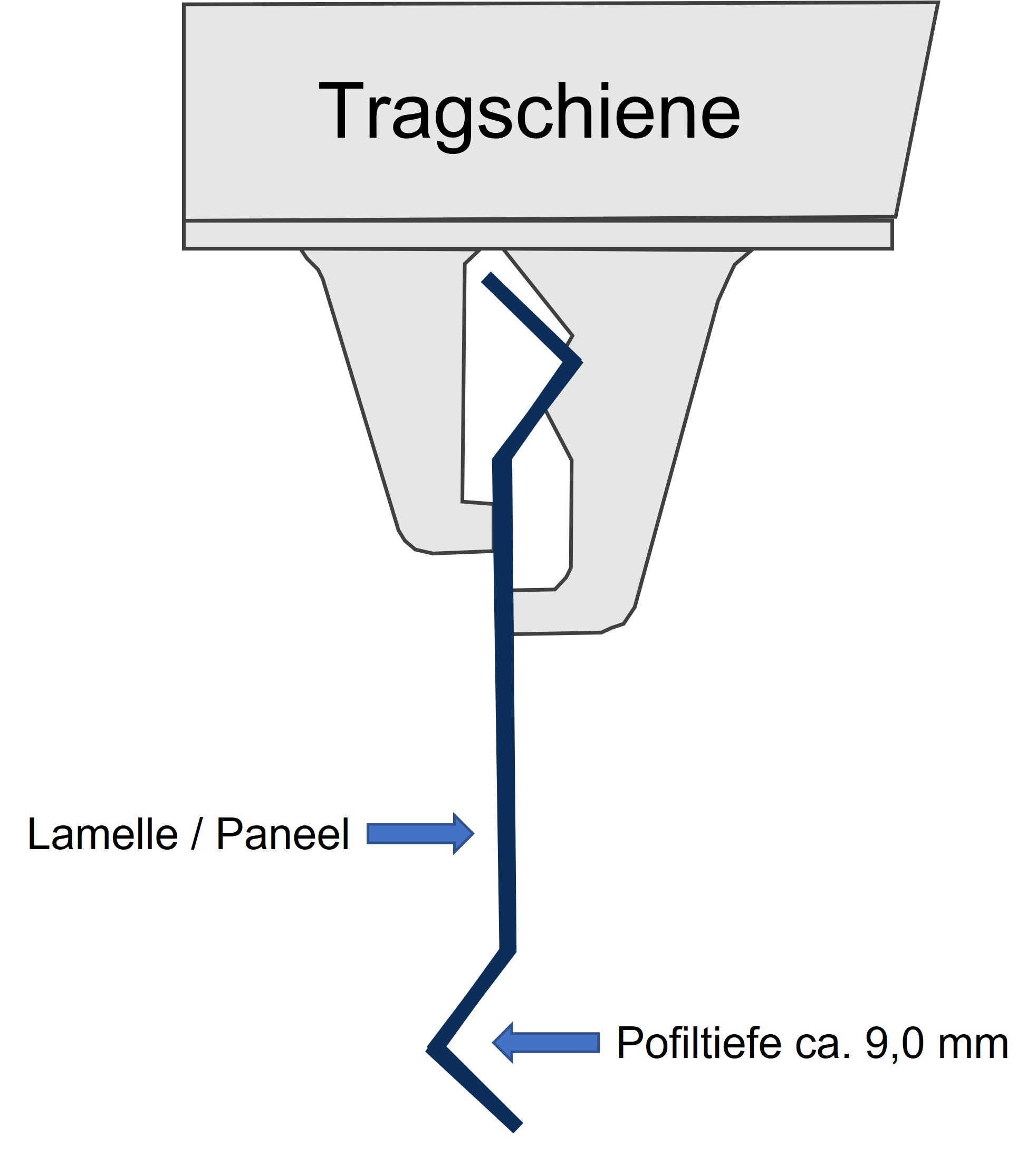 Tragschiene DOBNER Vertikal-LamellendeckeBemaßte Detailzeichnung →→