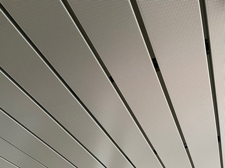 2. ORIGINAL DOBNER Aluminium-Paneeldecken mit offenen Fugen und perforierter Oberfläche