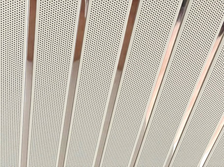 Die abgehängten DOBNER Aluminium-Paneeldecken mit offener Fuge erhalten Sie wahlweise mit glatter oder perforierter Oberfläche